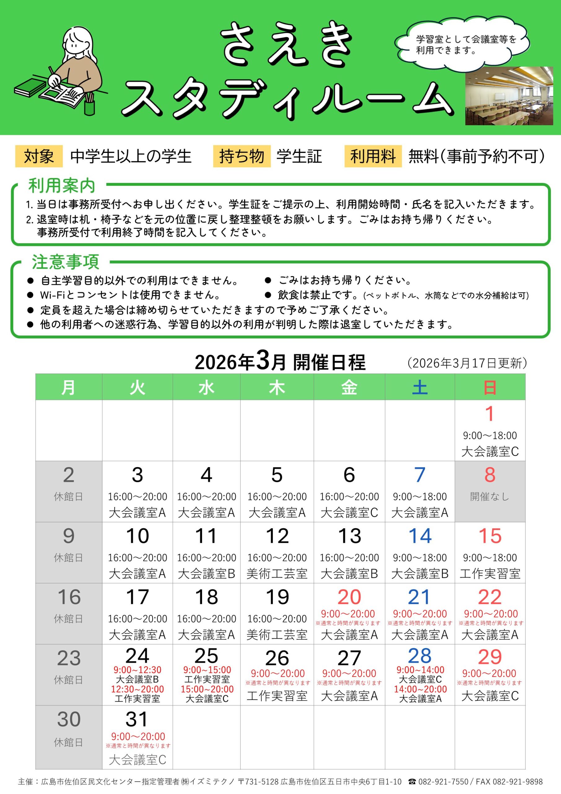 > 「2026年3月 さえきスタディルーム」チラシ ダウンロード(PDF)
