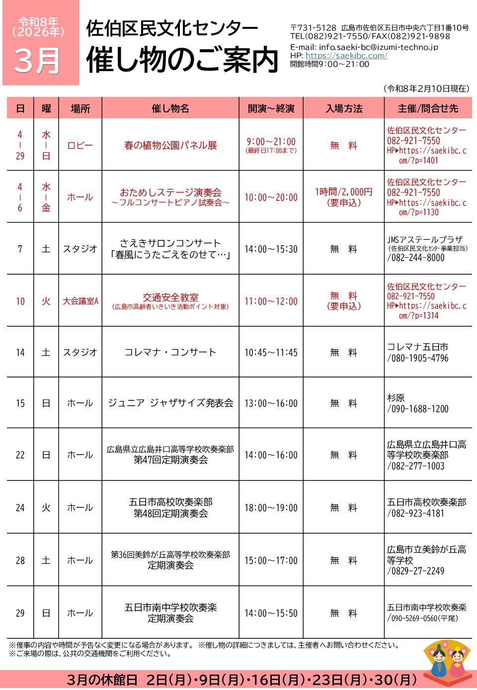 2026年3月の催し物のご案内です