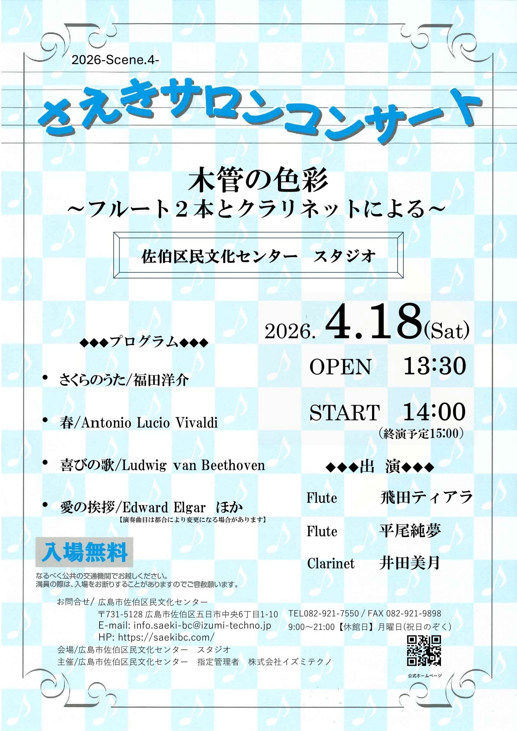 出演 | 飛田ティアラ(フルート)、平尾純夢(フルート)、井田美月(クラリネット) | |